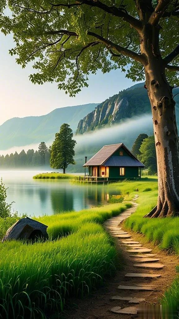 凝视这张照片,冬日的浓雾如一层薄纱,将整个村庄轻柔笼罩,把这里幻化成一个如梦似幻的仙境。古老的农舍在雾霭中朦胧可见,轮廓若隐若现,尽显岁月的斑驳。一旁的枯树,光秃秃的枝干直插雾气之中,显得格外孤寂。虽说大雾给人们的出行带来困扰,却也为这个山间村落带来了难有的宁静,宛如一首意境深远的诗篇。